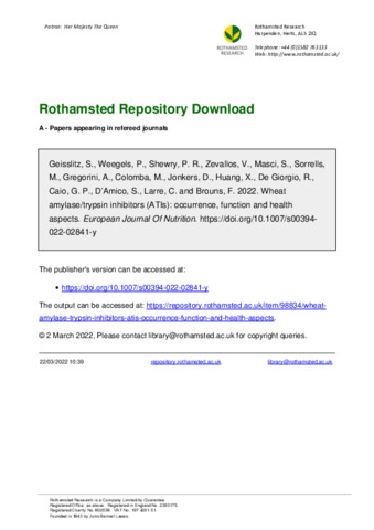| Keywords | Amylase/trypsin inhibitors , ATIs, Coeliac disease , Wheat allergy , Non-coeliac wheat sensitivity , Intestinal symptoms |