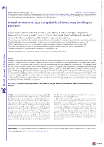 Mineral micronutrient status and spatial distribution among the Ethiopian population