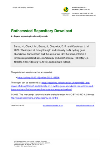 The impact of drought length and intensity on N cycling gene abundance, transcription and the size of an N2O hot moment from a temperate grassland soil