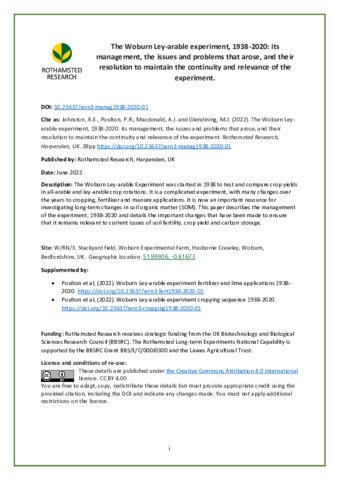 The Woburn Ley-arable experiment, 1938-2020: its management, the issues and problems that arose, and their resolution to maintain the continuity and relevance of the experiment.