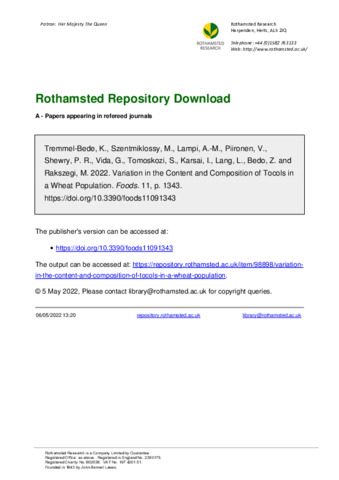 Variation in the Content and Composition of Tocols in a Wheat Population