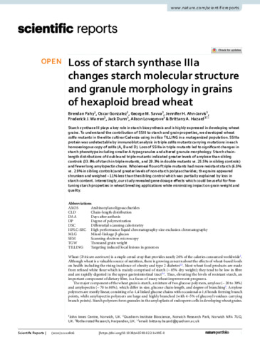 Loss of starch synthase IIIa changes starch molecular structure and granule morphology in grains of hexaploid bread wheat.