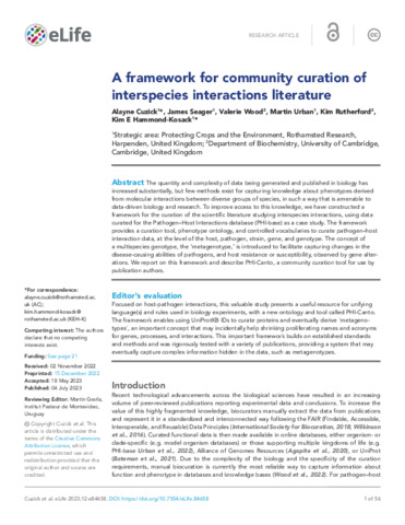 A framework for community curation of interspecies interactions literature