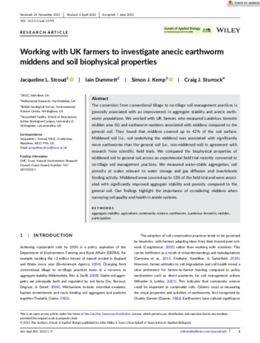 Working with UK farmers to investigate anecic earthworm middens and soil biophysical properties