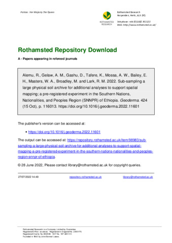 Sub-sampling a large physical soil archive for additional analyses to support spatial mapping; a pre-registered experiment in the Southern Nations, Nationalities, and Peoples Region (SNNPR) of Ethiopia