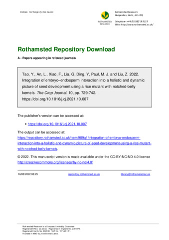 Integration of embryo–endosperm interaction into a holistic and dynamic picture of seed development using a rice mutant with notched-belly kernels