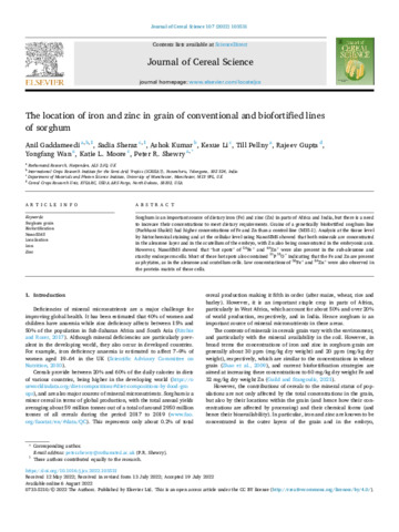 | Keywords | Sorghum grain, Biofortification, NanoSIMS, Localisation, Iron, Zinc |