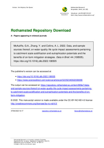 Data, and sample sources thereof, on water quality life cycle impact assessments pertaining to catchment scale acidification and eutrophication potentials and the benefits of on-farm mitigation strategies