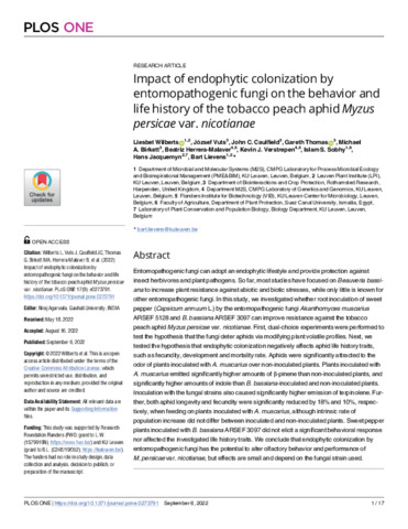 | Keywords | Entomopathogen, VOC's, Aphid, Olfaction, Behaviour, Fungi, Endophyte, Semiochemical |