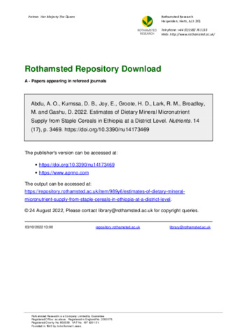 | Keywords | Dietary supply, Mineral micronutrients, Spatial data, Disaggregated data |