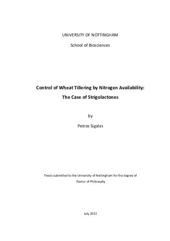 Control of Wheat Tillering by Nitrogen Availability: The Case of Strigolactones