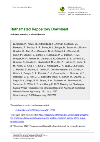 Meeting the Challenges Facing Wheat Production The Strategic Research Agenda of the Global Wheat Initiative