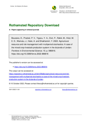 Agricultural resource and risk management with multiperiod stochastics: A case of the mixed crop-livestock production system in the drylands of Jordan