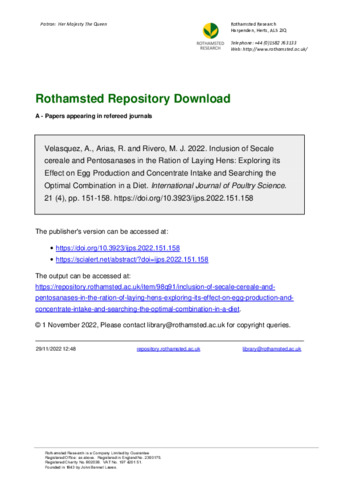 | Keywords | Concentrate consumption, Hen production , Pentosanases, Rye antinutritional factors , Poultry production, Egg production |