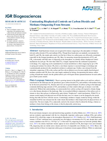 | Additional information | This study was financially support-ed through the Natural Environment Research Council (NERC) Macronutrient Cycles Programme (grant numbers NE/J012106/1, MT, and NE/J011738/1, AB), the German Science Foundation (grant RO 5921/1-1, LR). This work was funded by HADES-ERC Advanced Grant (No. 669947), the FNU-7014-00078 grant and the Danish National Research Foundation through the Danish Center for Hadal Research, HADAL (No. DNRF145) awarded to R.N. Glud. The authors acknowledge the land owners for allowing us access to the streams and thanks E. Malone, A. Jones, S. Warren, I. Sanders, F. Shelley and V. Warren for help with sample collection and preparation. Open access funding enabled and organized by Projekt DEAL. |