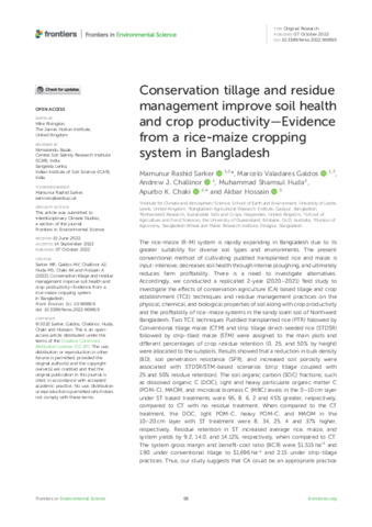 | Additional information | The manuscript is a part of a PhD—Research of first author MS; thesis title: Trade-off analysis of crop residue managementfor improving conservation agriculture practices under a changing climate in Bangladesh. The research was financially supported by the National Agricultural Technology Program (NATP-Phase II), Bangladesh Agricultural Research Council (BARC), Bangladesh and Climate Research Bursary Fund, Priestley International Centre for Climate, University of Leeds, United Kingdom. |