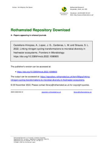 Editorial: Linking nitrogen cycling transformations to microbial diversity in freshwater ecosystems.