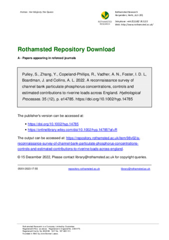A reconnaissance survey of channel bank particulate phosphorus concentrations, controls and estimated contributions to riverine loads across England