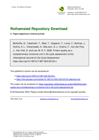 Protein quality as a complementary functional unit in life cycle assessment (LCA)
