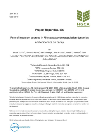 Role of inoculum sources in Rhynchosporium population dynamics and epidemics on barley