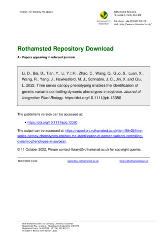 | Keywords | Canopy coverage, Dynamic regulation, GWAS, Soybean, Time series, Unmanned aircraft system |