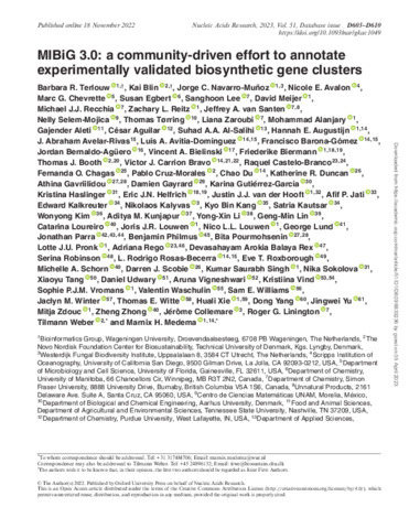 | Additional information | ERC Starting Grant [948770-DECIPHER to M.H.M.]; Novo Nordisk Foundation [NNF20CC0035580, NNF16OC0021746 to T.W]; Danish National Research Foundation [DNRF137 to T.W]; National Center for Complementary and Integrative Health (NCCIH) of the National Institutes of Health [U24AT010811 to R.L. and F32AT011475 to N.E.A]; Natural Sciences and Engineering Council of Canada Discovery grant [to R.L.]; Netherlands Organization for Scientific Research (NWO) Veni Science Grant [VI.Veni.202.130 to M.A]; European Union Horizon 2020 projects CARTNET [765147], SECRETed [101000794] and MARBLES [101000392]; Horizon 2020 Marie Skłodowska-Curie Actions [893122 to K.H.]; Horizon 2020 Marie Sklodowska-Curie Individual Fellowship [MSCA-IF-EF-ST-897121 to M.A.S.]; U.S. Department of Energy [DE-AC02-05CH11231]; University of Strathclyde PhD Research Excellence Award [to D.S.]; Consejo Nacional de Ciencia y Tecnolog´ıa (CONACyT) [757173 to L.R.R.-B.]; Portuguese Science and Technology Foundation (FCT) fellowship [SFRH/BD/140567/2018 to A.R.]; U.S. National Science Foundation [CBET-2032243 to A.M.K]; National Research Foundation of Korea [NRF-2022R1C1C2004118 and NRF-2020R1C1C1004046]; National Institutes of Health [GM134688 to E.K. and 1R01AI155694 to J.M.W.]; Netherlands eScience Center (NLeSC) Accelerating Scientific Discoveries Grant [ASDI.2017.030 to J.J.J.v.d.H.]; Deutsche Forschungsgemeinschaft [398967434-TRR 261]; UKRI Biotechnology and Biological Sciences Research Council [BBSRC; BB/R022054/1 and BB/W013959/1]; UK government Department for Environment, Food and Rural Affairs [project DEEPEND: deep ocean resources and biodiscovery]; Fundac¸ao Carlos Chagas Filho de ˜ Amparo a Pesquisa do Estado do Rio de Janeiro [E- ` 26/211.314/2019]; Fundac¸ao para a Ciencia e Tecnologia (FCT) fellowship [SFRH/BD/136367/2018 to R.C.B.]; German Chemical Industry scholarship [to F.B.]; Cooperative Research Centres Projects scheme [CRCPFIVE000119 to T.J.B.]; Consejo Nacional de Ciencia y Tecnolog´ıa (CONACyT) [735867 to J.B-A.]; Natural Sciences and Engineering Council of Canada PGSD fellowship [to L.Z.]; Natural Sciences and Engineering Council of Canada PGSD fellowship [to M.R.]; Odo van Vloten foundation [to J.N.-M.]; LOEWE Center for Translational Biodiversity Genomics (LOEWE TBG), Funds of the Chemical Industry Germany; Rothamsted Science Initiatives Catalyst Award scheme grant ‘Microbial natural product discovery pipeline for next generation fungicides’. Funding for open access charge: European Research Council. |
