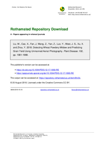 | Additional information | Funding information : National Key Research and Development Program of China Grant/Award Number: 2016YFD0300702 National Natural Science Foundation of China Grant/Award Number: 31671966 Special Fund for Agro-scientific Research in the Public Interest Grant/Award Number: 20130316 BBSRC Industrial Strategy Challenge Fund Grant/Award Number: BBS/OS/CP/000001 Science and Technology Facilities Council (STFC) under Newton Fund Grant/Award Number: ST/N006852/1 |