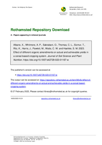 Effect of different organic amendments on actual and achievable yields in a cereal-based cropping system