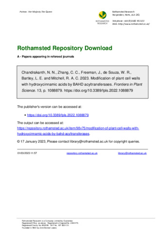 Modification of plant cell walls with hydroxycinnamic acids by BAHD acyltransferases