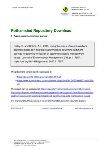 Using the colour of recent overbank sediment deposits in two large catchments to determine sediment sources for targeting mitigation of catchment-specific management issues