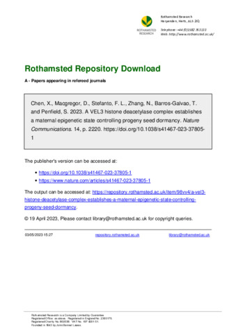 A VEL3 histone deacetylase complex establishes a maternal epigenetic state controlling progeny seed dormancy