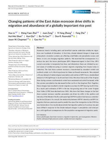 | Keywords | Brown planthopper, Windborne insect migration, Migration trajectories, Pest management, Western Pacific subtropical high-pressure system, East Asian monsoon |