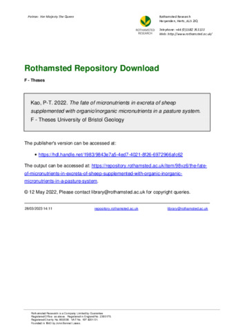 | Keywords | Pasture, Micronutrient, Nutrient, Trace element, Sheep, Mineral supplement, Soil |
