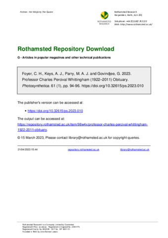Professor Charles Percival Whittingham (1922–2011) Obituary.