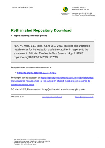 Editorial: Targeted and untargeted metabolomics for the evaluation of plant metabolites in response to the environment.