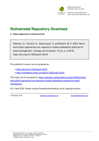 Novel and holistic approaches are required to realise allelopathic potential for weed management