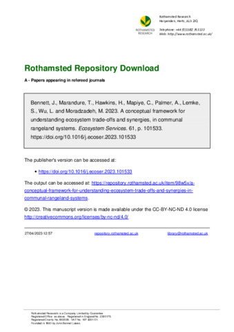 A conceptual framework for understanding ecosystem trade-offs and synergies, in communal rangeland systems
