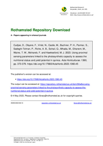| Keywords | Chenopodium quinoa, SPAD, NDVI, N status, net CO2 assimilation, photosynthesis |
