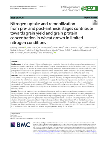 Nitrogen uptake and remobilization from pre‑ and post‑anthesis stages contribute towards grain yield and grain protein concentration in wheat grown in limited nitrogen conditions