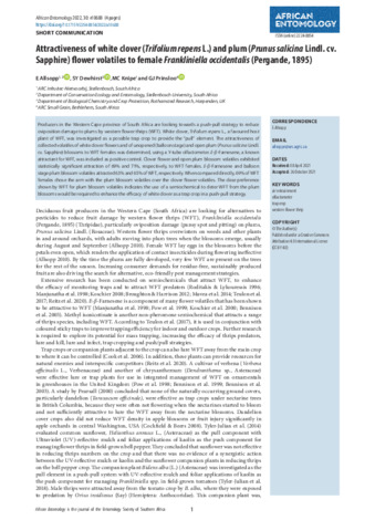 Attractiveness of white clover [Trifolium repens L.) and plum (Prunus salicina Lindl. cv. Sapphire) flower volatiles to female Frankliniella occidentalis (Pergande, 1895)