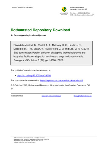 | Keywords | Adaptive tolerance, Heat stress, Livestock, Phenotypic plasticity, Phylogeny, Size dependence |