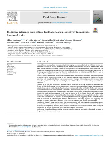Predicting intercrop competition, facilitation, and productivity from simple functional traits.
