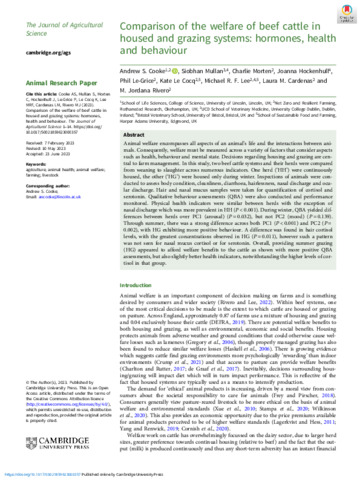 Comparison of the welfare of beef cattle in housed and grazing systems - hormones, health, and behaviour