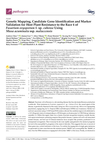 | Additional information | This article belongs to the Special Issue Current Research on Fusarium Funding This research was funded by the Bill and Melinda Gates Foundation, grant number (OPP1213871), and the APC was funded by (OPP1213871/INV-002979). This work was supported, in part, by the Bill and Melinda Gates Foundation (OPP1213871) through a program with the International Institute of Tropical Agriculture. Research funding support was also provided, in part, by Hort Innovation Australia (BA 17006) and by Bayer Crop Science through a technical assistance grant ‘Acceleration of the identification of the resistance genes in banana and the generation of markers for the banana breeding program’. Jiaman Sun is supported by Guangxi Science and Technology Planning Project (Guike AA21196005) and Guangxi Natural Science Foundation (2021GXNSFAA196014). |