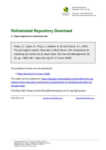The soil organic carbon: Clay ratio in North Devon, UK: Implications for marketing soil carbon as an asset class