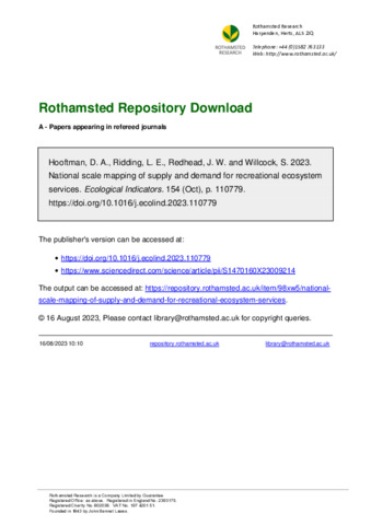 National scale mapping of supply and demand for recreational ecosystem services
