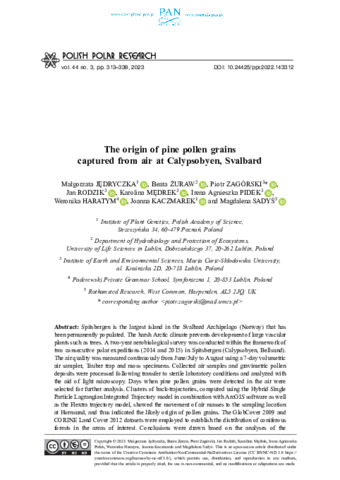 | Keywords | Arctic, Spitsbergen, Pollen dispersal, Pinus spp., Long distance transport |