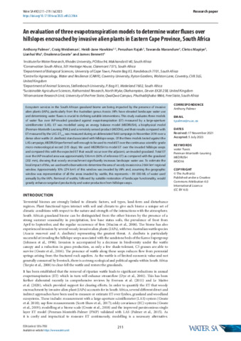 An evaluation of three evapotranspiration models to determine water fluxes over hillslopes encroached by invasive alien plants in Eastern Cape Province, South Africa
