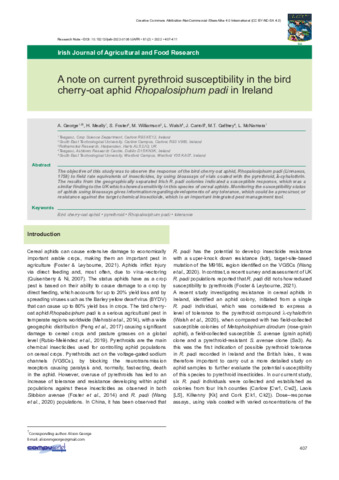 A note on current pyrethroid susceptibility in the bird cherry-oat aphid Rhopalosiphum padi in Ireland