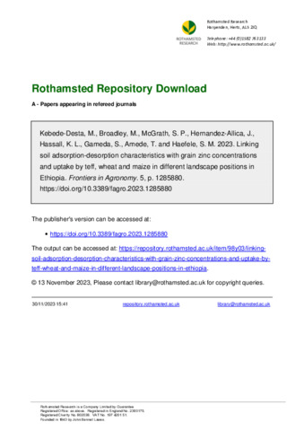 Linking soil adsorption-desorption characteristics with grain zinc concentrations and uptake by teff, wheat and maize in different landscape positions in Ethiopia
